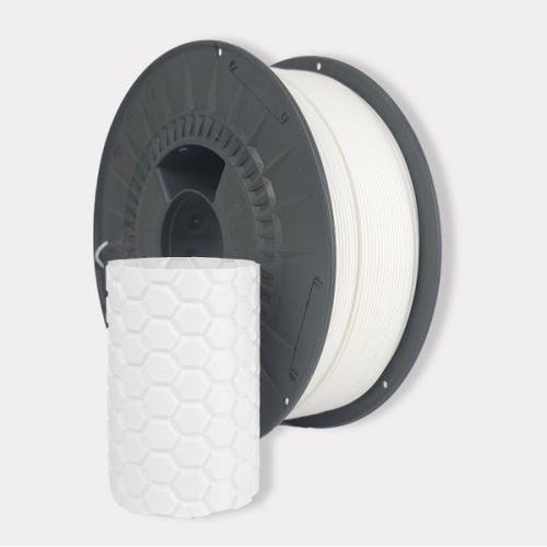 Le PLA (Acide PolyLactique) est un plastique biosourcé quotidiennement utilisé dans les emballages alimentaires et les sacs en plastique, ainsi que dans l'impression 3D. Il est généralement fabriqué à partir d'amidon de maïs, de canne à sucre ou de betterave, et est biodégradable en conditions industrielles. Dans son état naturel, le PLA est beige et légèrement translucide, mais il peut être coloré avec des pigments.