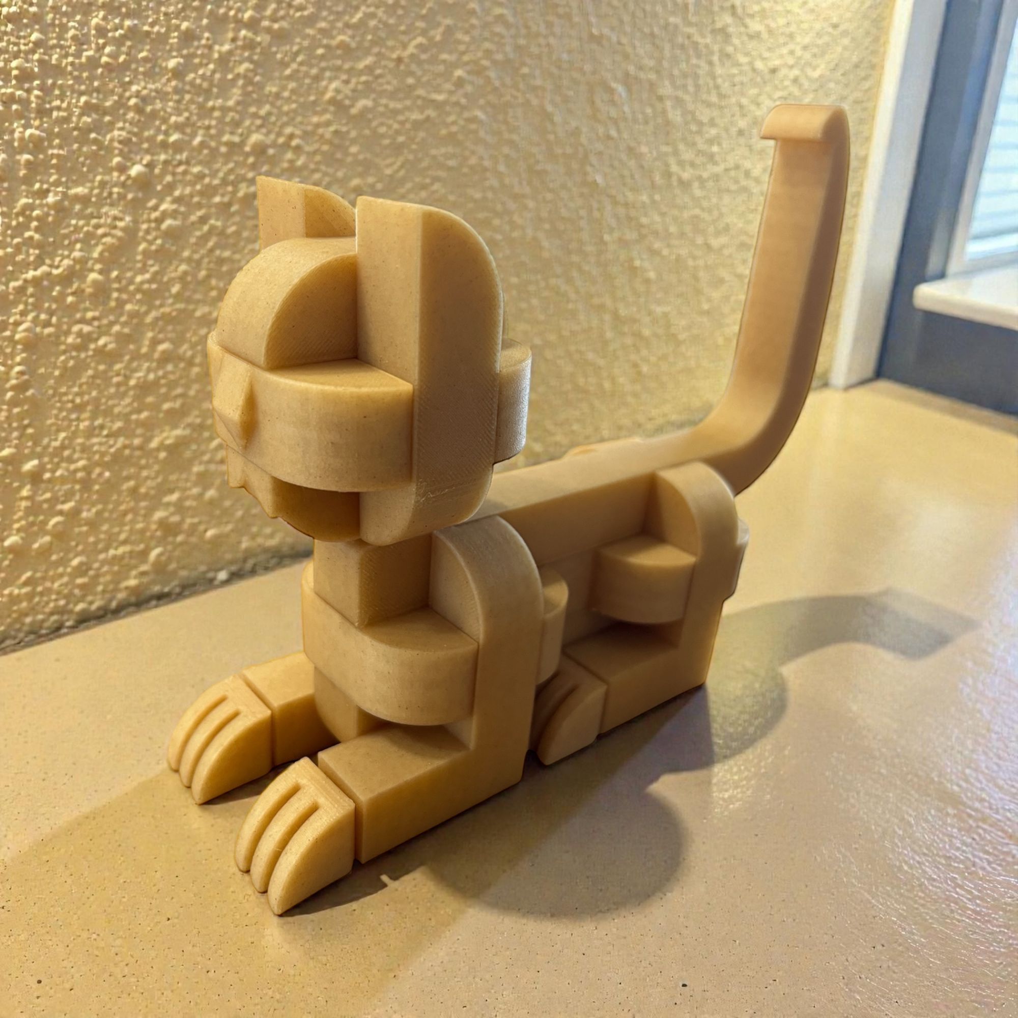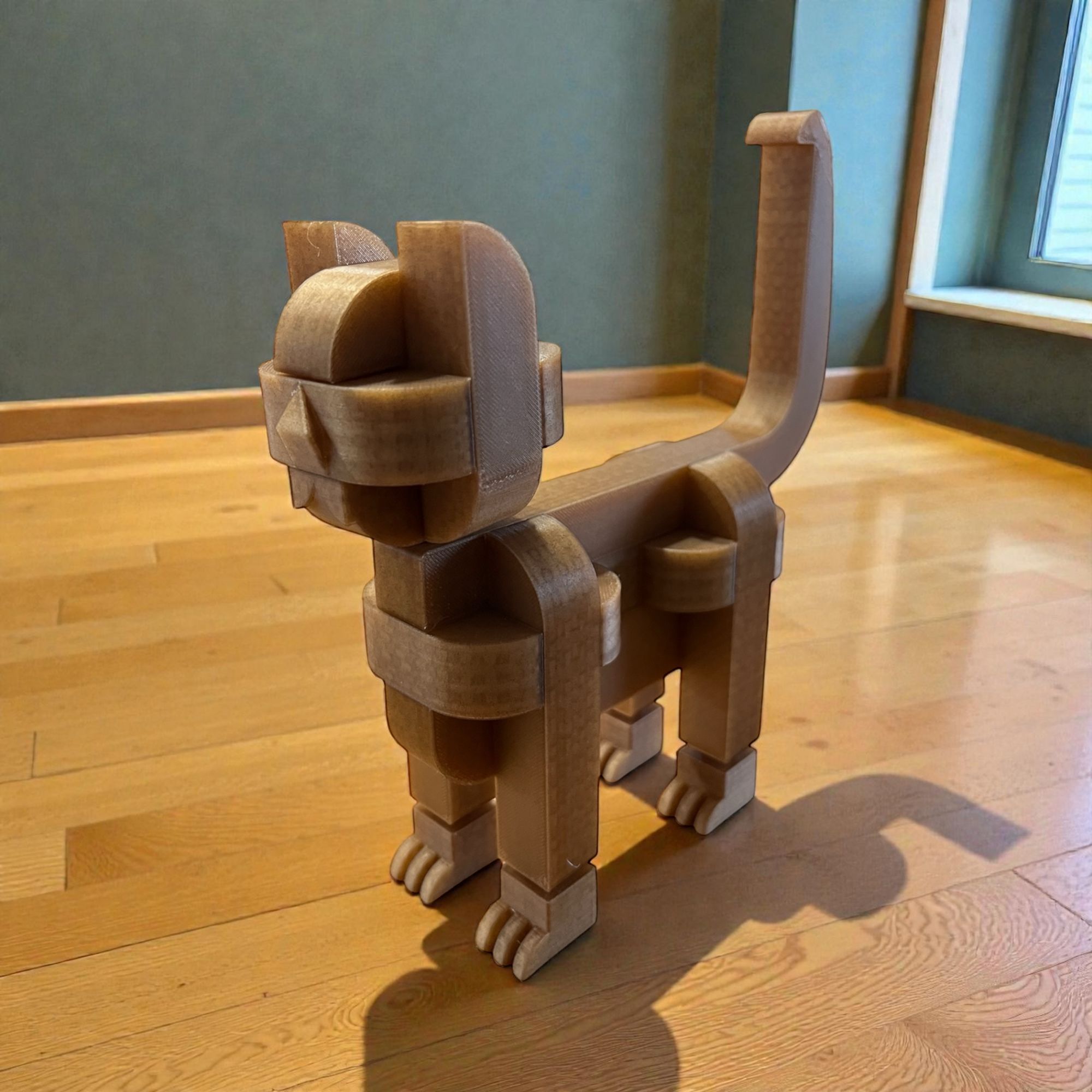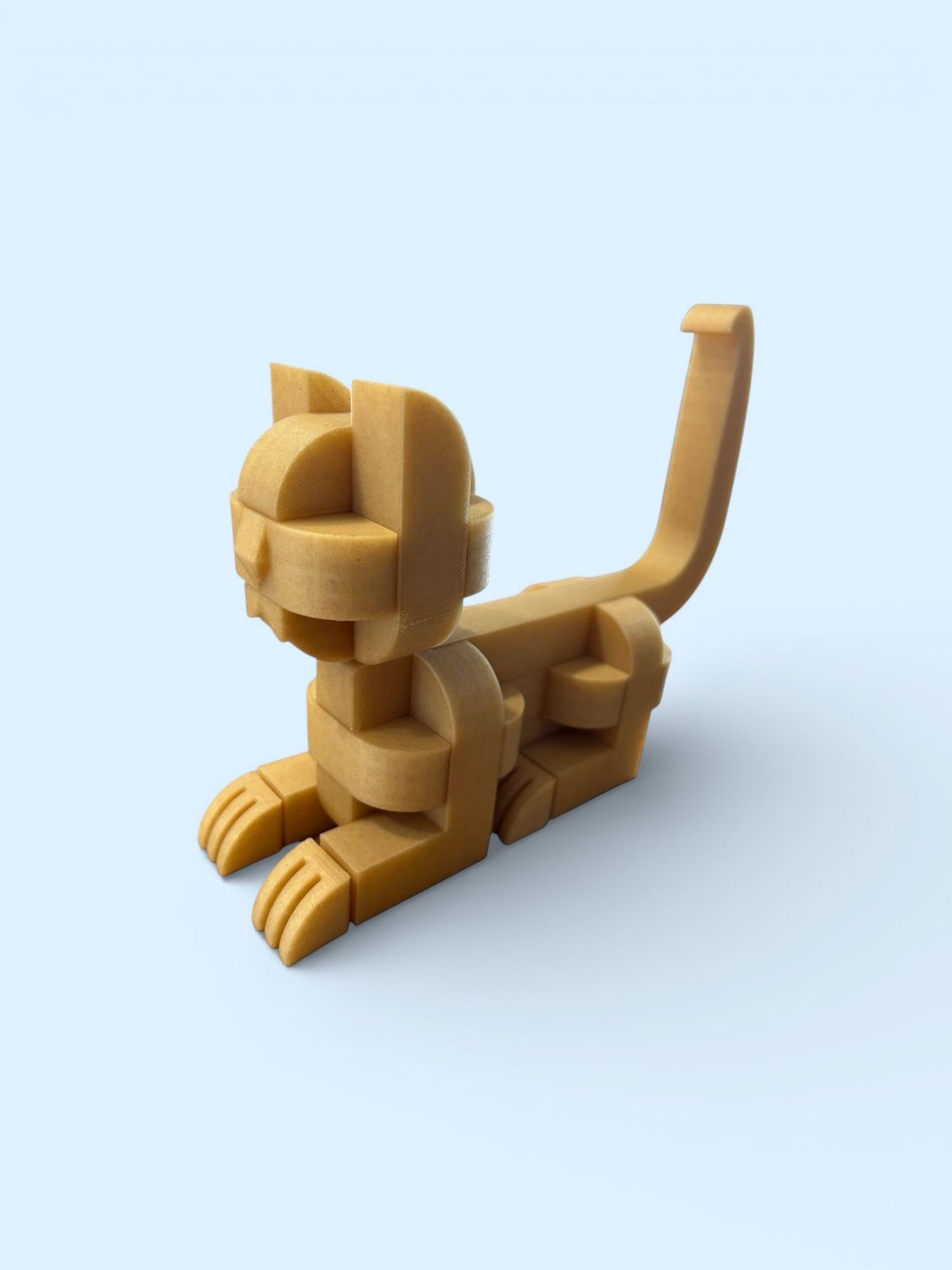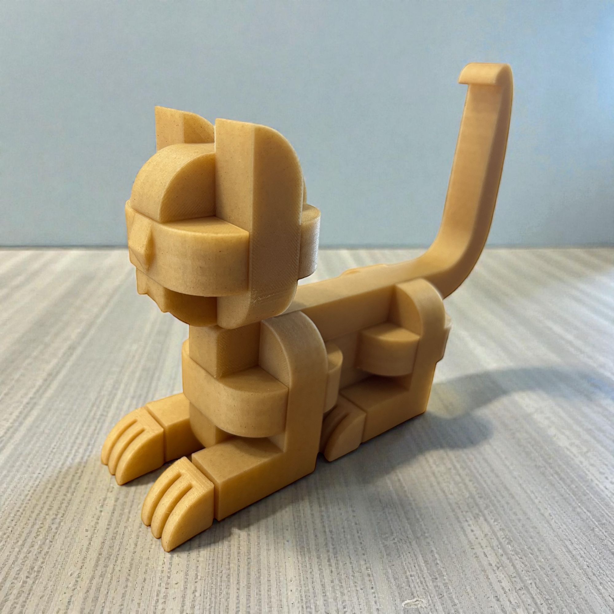 Ce puzzle se compose de 19 pièces avec des trous, assemblés avec 15 goujons, plus 4 fixations à emboîtement pour les griffes, et une fixation supplémentaire à emboîtement pour sécuriser le dos et la tête au reste du corps.