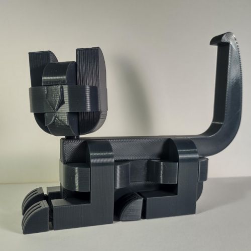 Ce puzzle se compose de 18 pièces avec des trous, assemblés avec 15 goujons, plus 4 fixations à emboîtement pour les griffes, et une fixation supplémentaire à emboîtement pour sécuriser le dos et la tête au reste du corps.