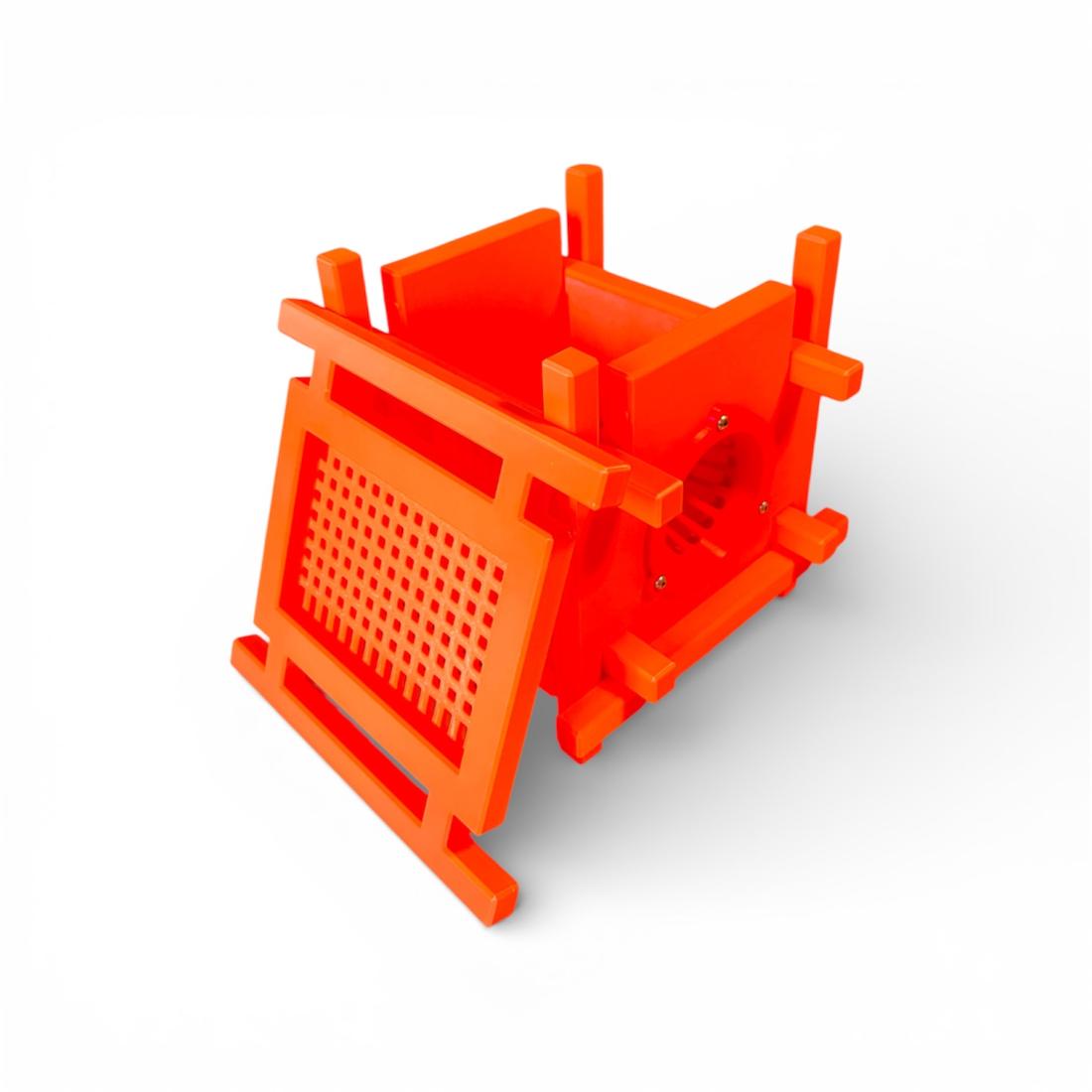 Les frelons entrent par l'ouverture en forme de cône mais sont incapables de s'échapper. Ce système est sécurisé pour les abeilles, car elles peuvent sortir à travers des ouvertures spécialement adaptées à leur taille. Le piège à frelon a fixé à l'aide de 3 vis. La boite est conçue en partenariat avec Arkitektoy